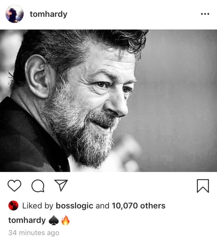 Star Tom Hardy recently shared an image of Andy Serkis on his Instagram, but swiftly deleted it.
